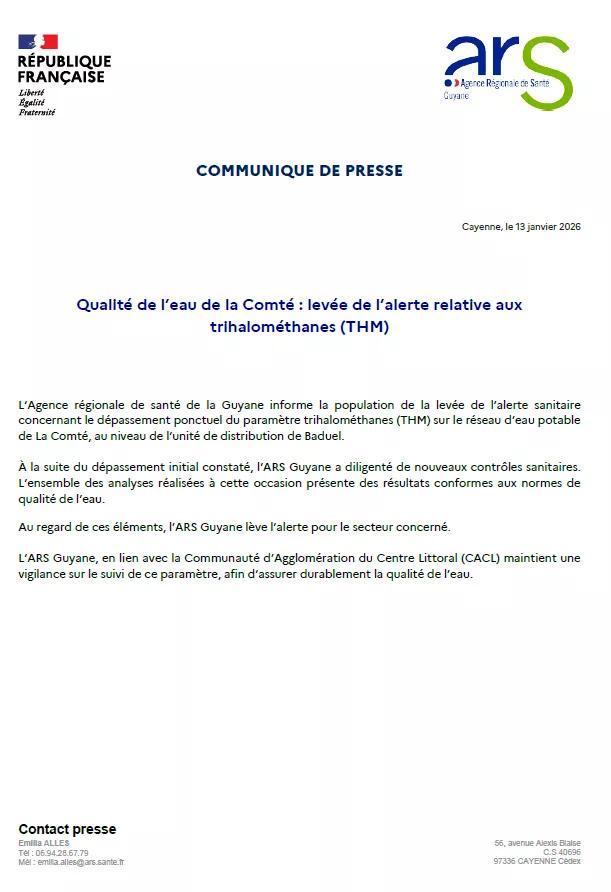 Qualité de l’eau : levée de l’alerte relative aux trihalométhanes (THM)